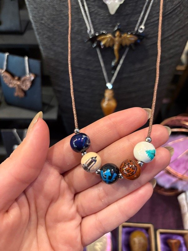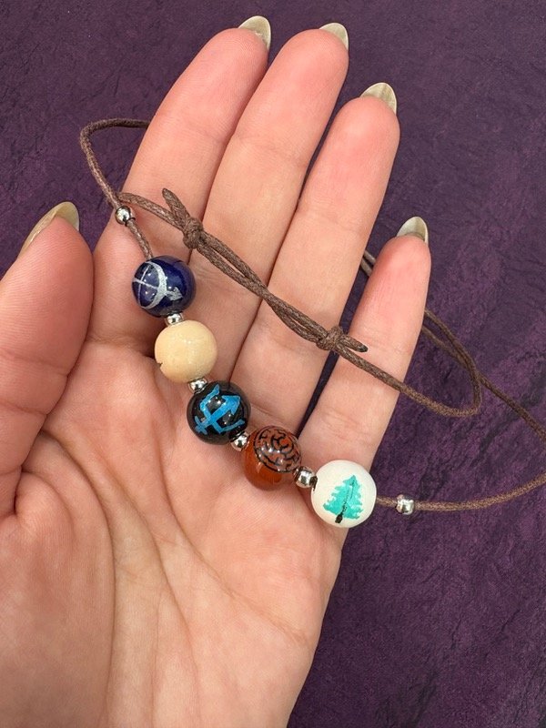 Viene con cuerda regulable y los dijes están barnizados, para proteger su brillo recomiendo cuidarlo de golpes, ralladuras y no mojarlo con solventes o perfumes.