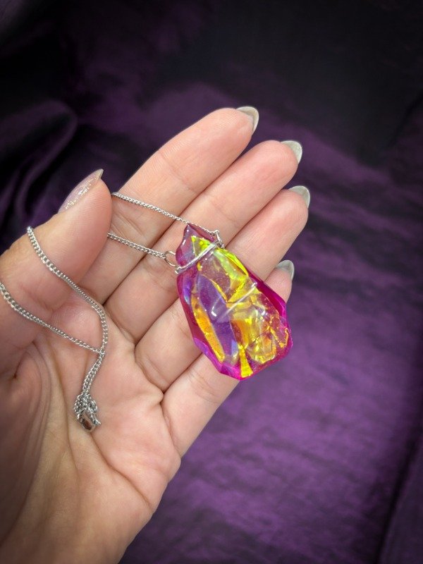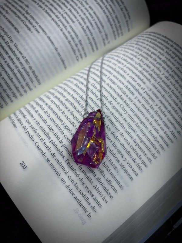 Producto único completamente artesanal. Realizado en resina epoxi con pigmentos y papel tornasol en el interior que da un efecto mágico en contraluz. Al ser hecho a mano cada piedra puede tener ligeras diferencias de color.